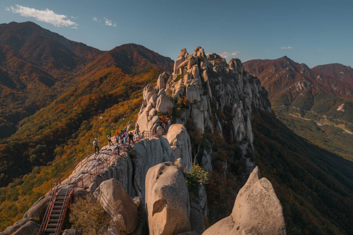 설악산 울산바위는 가을 단풍 명소로 특히 유명합니다.